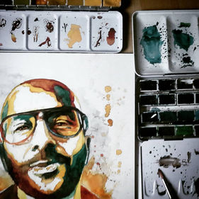 Von Urban Art inspiriert, habe ich meine Leidenschaft, das Malen von Porträts für mich entdeckt. Besonders reizten mich dabei die Effekte der Multilayer Stencils, die mit Sprühdosen entstehen und meist auf Mauern oder Hauswänden zu finden sind. Dieser Stil der Stencil Art ist gekennzeichnet durch scharfe und deutliche Licht -und Schatten Kontraste sowie Farbspritzer und herunterlaufender Farbe. Mein Vorhaben war es diese Effekte auf die Aquarellmalerei zu übertragen, was mir nach einem längerem Schaffensprozess gelungen ist. Damit kreierte ich einen neuen Stil mit Aquarell zu malen.